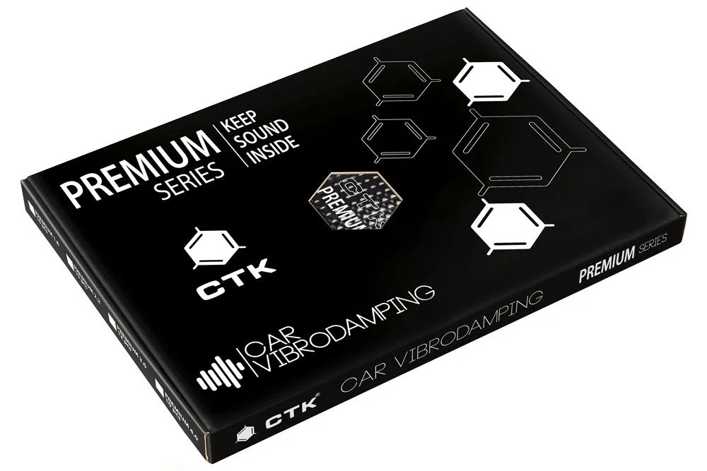 CTK Premium on alumiinipintainen 3,0mm paksu vaimennusmatto, joka tehokkaasti poistaa vaimennettavan pinnan värähtelyjä.