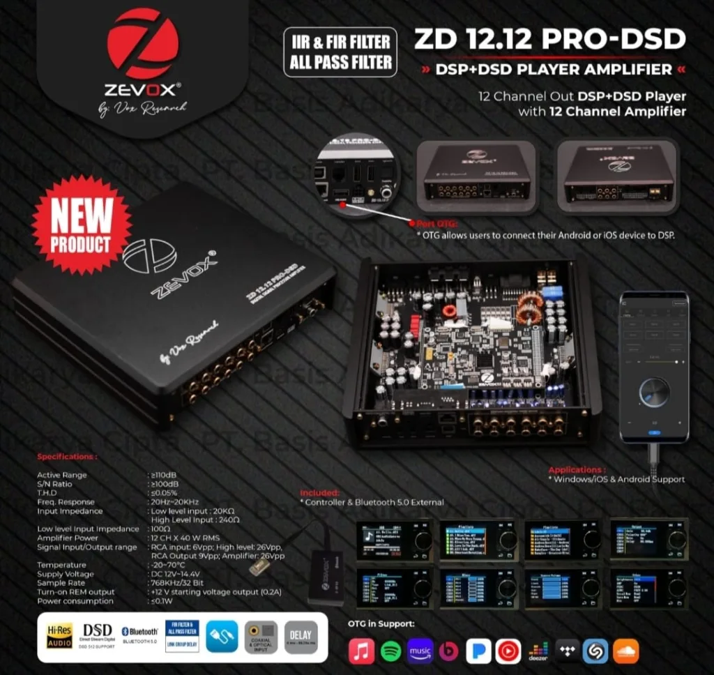 ZD 12.12 PRO DSD on huipputason digitaalinen signaaliprosessori ja vahvistin yhdessä laitteessa. Siinä on 12-kanavainen DSP + DSD-soitin sekä 12-kanavainen vahvistin. Laite tukee häviötöntä äänentoistoa ja tarjoaa laajat säätömahdollisuudet sekä Android-, iOS- että Windows-tuen.