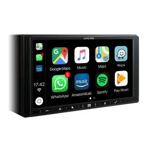 Kun yhdistät iPhonen USB-kaapelilla, saat kaikki Apple CarPlay toiminnot käyttöösi. Voit muun muassa vastaanottaa ja soittaa puheluita, lähettää viestit Sirin avulla ja käyttää esimerkiksi Google Mapsia, Applen Kartat -sovellusta, WhatsApp:ia tai Spotifyn suoratoistoa suoraan Alpinen kosketusnäytöltä.