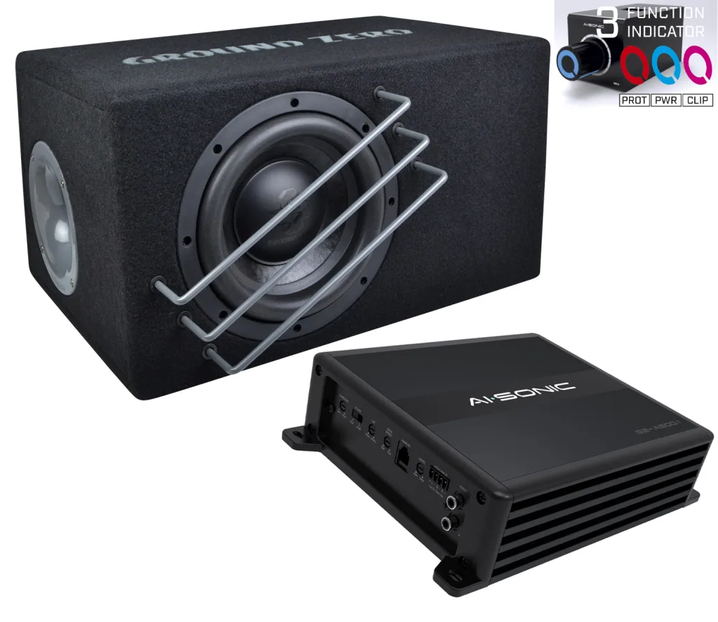 Uudet SQ-bassopaketit ovat täällä! Olemme valinneet paketteihin sopivat vahvistimet, sekä valmiiksi koteloidut subwooferit. Ground Zero Uranium 8″ subwoofer. Uranium sarjan valmiskotelot ovat järeitä, kompaktin kokoisia ja ne on viritetty erityisen matalalle. Tällä valmiskotelolla saavutetaan matalalle ulottuva toisto, loistava äänenlaatu eikä tehoakaan tarvita paljoa. Elementtinä tässä kotelossa käytetään uutta Uranium GZUW 8SQ-D2 subwooferia Vahvistimena toimii AI-SONIC S2-A500.1 huippulaadukas D-luokan monovahvistin. Mukana tasonsäädin missä on myös virta-, klippi- ja häiriötilan merkkivalot.