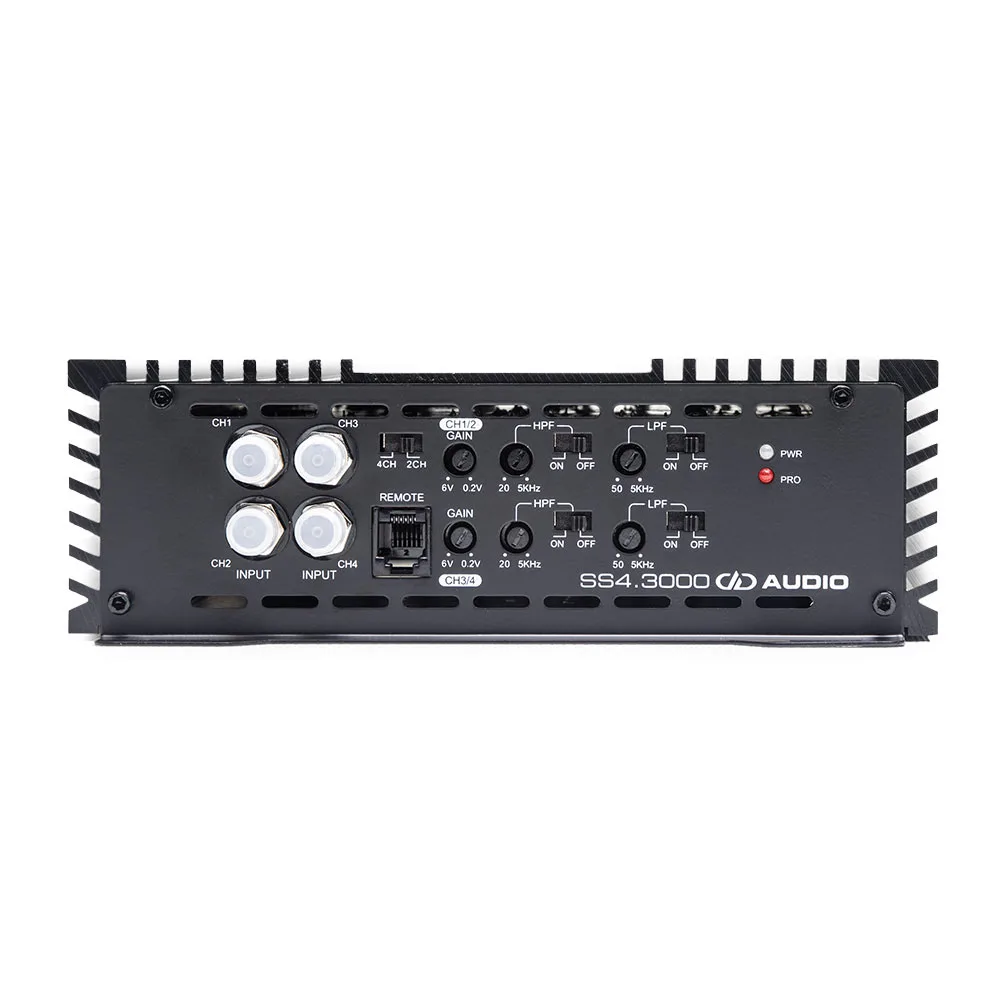 SS4.3000 on on täyden äänialueen 4-kanavainen vahvistin, joka tuottaa 750wattia per kanava. Vahvistin soveltuu niin subwoofereiden, kuin kaiuttimien soittamiseen, laajojen suotimien ansiosta.