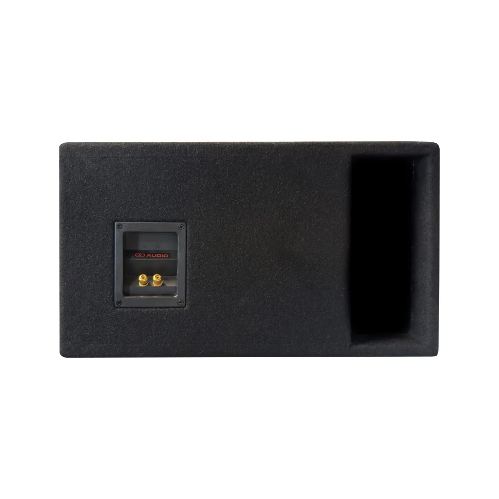 Kotelon sivulta löytyy hyvin virtaava portti, sekä ruuviterminaalit. Koteloiden viritystaajuus: 43Hz. Kotelot on valmistettu kestävästä 19mm MDF-levystä ( etulevy vaneria ).