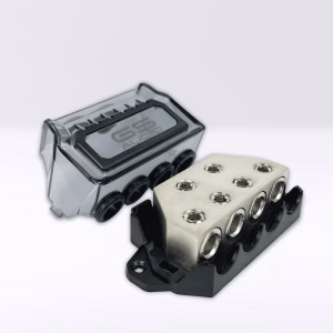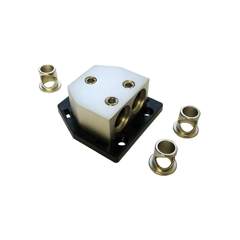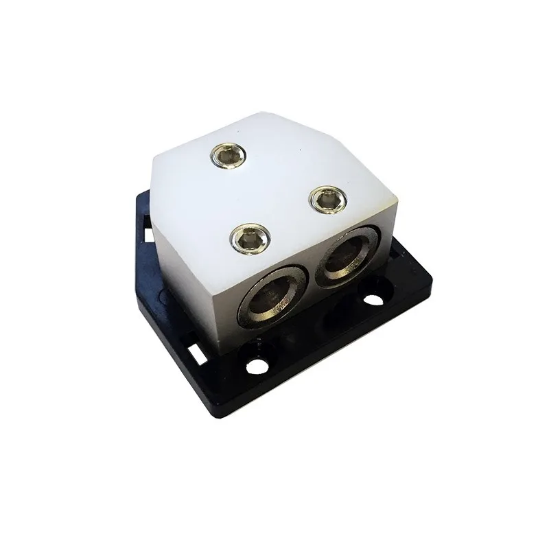 Tällaista jakoblokkia markkinat ovat odottaneet vuosia. Jokainen liitäntä on joko 20 mm2 tai 50 mm2 sen mukaan mitä sinä tarvitset. Kaikki liitännät on porattu kokoon 50 mm2 mutta jokaisessa liitännässä on supistusholkki jolla saadaan liitäntä sopivaksi 20 mm2 kaapelille. Holkin poistamalla liitäntä on 50 mm2.