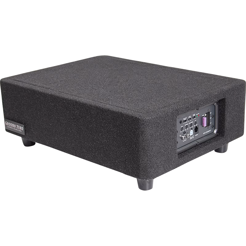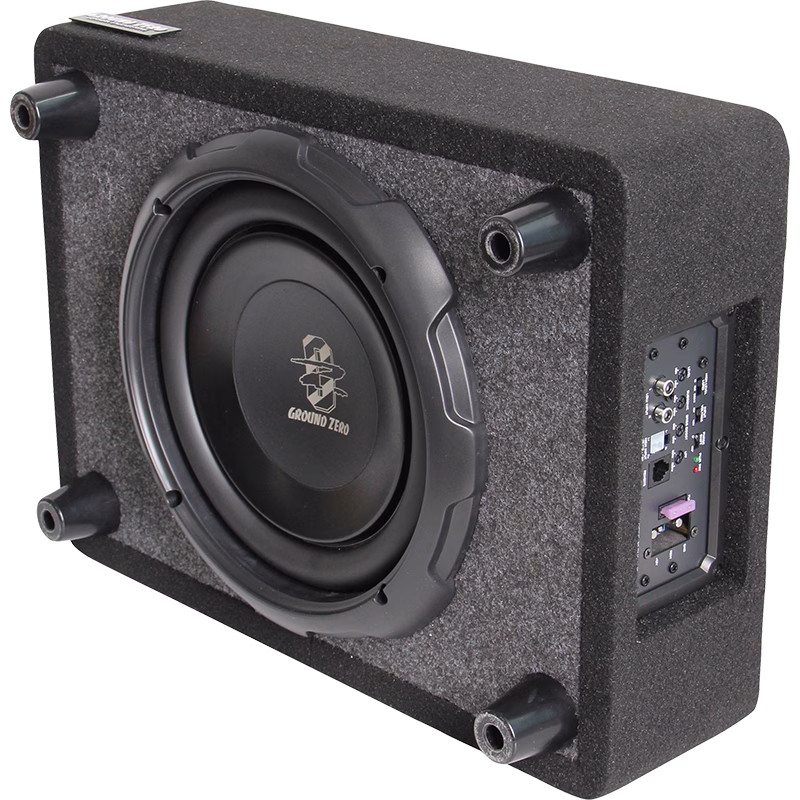 Tämä litteä 10″ subwoofer on suunniteltu toimimaan täydellisesti alaspäin ampuvassa kotelossa. Toimii myös erittäin hyvin vararengas montussa tai penkin alla. Sisäänrakennettu AB-luokan vahvistin on todella tehokas ja sen erikoisuutena on pikkiinnikkeillä varustettu virtaliitin. Virtaliittimen irroittamalla voit tarvittaessa siirtää basson sivuun jos se on tielläsi ja kytkeä sen todella helposti takaisin