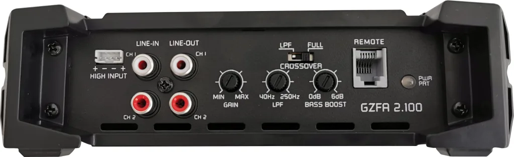 Vahvistimissa on myös kaiutintasoiset sisääntulot, joten kytkeminen onnistuu myös auton alkuperäisen soittimen perään.