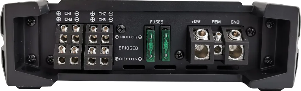 Vahvistimissa on myös kaiutintasoiset sisääntulot, joten kytkeminen onnistuu myös auton alkuperäisen soittimen perään.