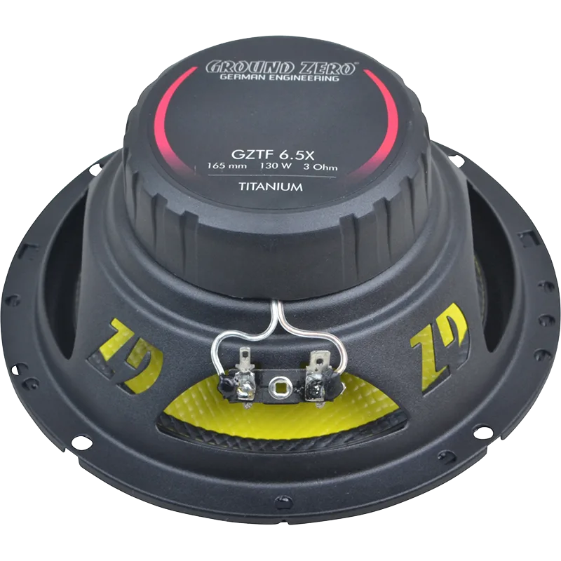 Ground Zero TITANIUM-sarjan 6.5″ 2-tie koaksiaalikaiutin. Midbassossa HQPP-kartio. Diskanttina käytetään mylar kartiolla olevaa 13mm elementtiä. Ground Zero GZTF koaksiaalikaiuttimet ovat edullinen valinta korvaamaan auton alkuperäiset kaiuttimet. Erinomainen hinta-laatusuhde. Kaiutinten hyvän herkkyyden ansiosta ne soivat mainiosti jo pelkän soittimen tehoilla. Parihinta. Kaiutinritilät sisältyvät pakkaukseen.