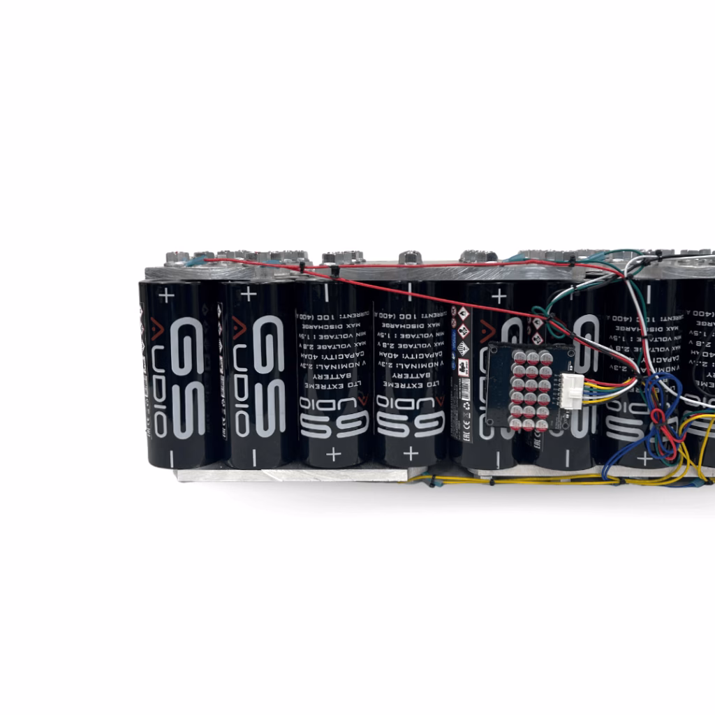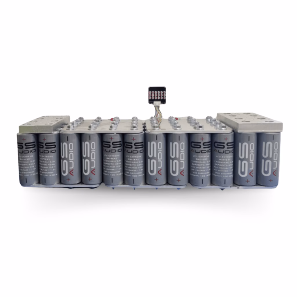 GS AUDIO BATTERY PACK 28X84cm – 48 CELLS LTO – 320A/360A 14V + BMS AND BARSNo more heavy AGM batteries!GS Audio offers battery packs with 40 and 45A LTO cells, available in various sizes and features, ideal for high-performance systems. In this listing you will find an example with specifications, but for special needs, we can make custom packs and assemblies. Choose the battery pack according to your installation:48 CELLS 40A = 320A/14V >>> IDEAL FOR SYSTEMS UP TO 28-32000 WRMS48 CELLS OF 45A = 360A/14V >>> IDEAL FOR SYSTEMS UP TO 32-36000 WRMSPleasenote: this value is only an estimate. Each customer uses the car differently, with amplifiers on different impedances and various genres of music. Also, each car has a different alternator, so the value provided is a reference, but may vary based on many factors. Mounting specifications:Protect battery poles and use a suitable box (including wooden); Convenient to install in contact with the backrest or under the subwoofer box.Shipping and assembly:Product is available but needs 1-3 days to be assembled, loaded and shipped;Assembly done with 8-10 mm thick aluminum rods, washers, bolts pulled with dynanometer wrench, balancer, and drilled head bars with M8 threads;Package dimensions: ~ 28×84 cm (28×90 cm considering bars). Weight: ~ 60/65 kg; You can complete your purchase with:➡️ SPECIFIC 20 AH BATTERY CHARGER(link here)➡️ ALTERNATOR for LTO charging(link here)➡️ POWER SUPPLY for playing and keeping cells charged(link here) Other technical specifications:LTO grade A cells with extremely low internal resistance, guaranteed lower 0.30 milliohmINDIVIDUAL CELL VALUES AND DATA SHEETDimensions66mmx160mm (66mmx202mm including threads)TypeLithium titanium oxideCell and pack weight 6~1.2kg each = 7.2kg/6pcsRated voltage2,3 VCapacity40 Ah – 45 AhLife16,000+ cyclesNorm. Discharge1C (40A – 45A)Maximum Discharge6C (240A – 270A)Discharge 10 sec.10C (400A – 450A)Temperature-55°C – 65°C——————————————————-SAFETY TESTS CONDUCTEDShear test = ZERO FLAMESElectrical puncture test = NO FLAMESShort circuit test = NO FLAMESDrop test = NO FLAMES Watch the video presentation: