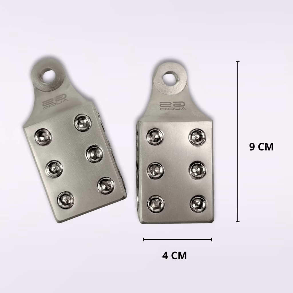 GS Audio Professional Battery Terminals (+/-) Heavy Duty 6×50 mm² | Multiple terminals for high-power car audio systemsMultiple Battery Terminals GS Audio are designed for high-power car audio systems that require safe and efficient power distribution. Made of high-conductivity nickel-plated brass, they allow the simultaneous connection of multiple large-section cables while maintaining stable, leakage-free current flow.Each terminal has 6 side outlets up to 50 mm², tightened with high-strength steel screws, ideal for handling complex configurations and ensuring maximum versatility. The pair includes one positive (+) and one negative (-) terminal, both with engraved GS Audio logo and massive, professional design.Specifications.Material: nickel-plated brass with high conductivityPair: 1 positive (+) terminal and 1 negative (-) terminalAvailable connections: 6 side outlets up to 50 mm² eachClamping system: high-strength steel screwsDesign: massive, rugged and anti-corrosionLogo: GS Audio engraving on both terminalsApplication: high-performance car audio and multi-cable systemsAdvantagesGS Audio 6×50 mm² clamps offer maximum electrical conductivity, resistance to oxidation and corrosion, allow multiple cables to be connected in one place, provide quick and secure assembly, and are ideal for high-power car audio systems. Looking for GS Audio batteries? LiFePo4s are available on our website, check out all the models in the dedicated category