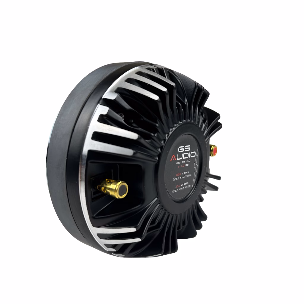 Gs Audio Driver/Tweeter 1.3/10KHz – 8 Ohm – 250 WRMS – 50mm voice coilPrice referred single piecePossibility to purchase the product combined with:1 Trumpet (HR 164 PL) dimensions: diameter 164mm – installation depth 47mm – depth including flange 54mm1 Trumpet (HR 129×129 PL) dimensions: side 129mm – installation depth 86mm – depth including flange 90mmGs Audio’s new in-house Compression Tweeters have been selected and customized for the perfect match to our woofers in installations on screaming fronts and tuning cars.This new series guarantees a wider and more linear frequency response, clear, powerful and undistorted sound, thanks to first-rate components such as:-high-quality magnets-calibrated throat diameter to increase efficiency-high-density plates-high-temperature coil-aluminum back cap for better aestheticsRetanning kits are available for the entire lineDownload here technical data sheet/Download here technical data sheet