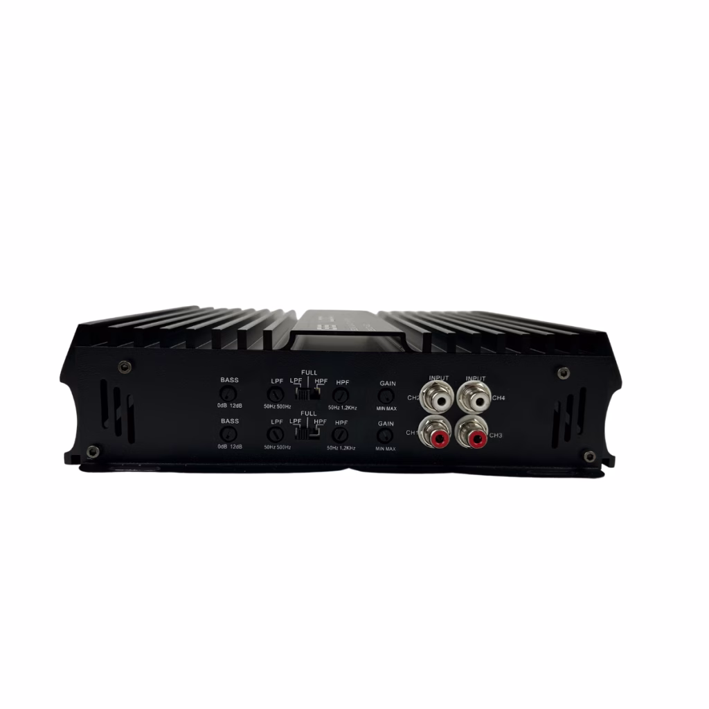 Gs Audio Amplifier GS-200.4 SQ / 4*200Wrms @2ohm / 2*400wRMS @4ohmThe new Gs Audio Full Range line of amplifiers for everyday use is designed and customized to provide the best sound qualities with a quality level similar to a class AB but mdimensions as compact as a class D. Due precisely to the sound qualities, a smaller size than a common class AB, and the versatility of a full range amplifier we named this series SQ (Sound quality). As you can see from the internal photos these amplifiers made in Korea have nothing to do with modern Brazilian digital, but they are characterized by a large chassis, large capacitors and toroids, as well as a power terminal block for cables up to 25mmq! In addition, thanks to the clipping indicator light, it will be very easy to do-it-yourself calibration of the maximum operating level before the clip threshold Powers: 4*140Wrms @ 4 ohms4*200Wrms @ 2 ohmsbridge mode: 2*400Wrms @ 4 ohmstrimode: 2*140Wrms @4 ohm + 1*400Wrms @ 4 ohm For those using the amplifier with internal active filters without a processor, here are the frequency cutoffs:separate for channels 1-2 and 3-4LPF: 50hz to 500Hz (can be turned off)HPF: 50hz to 1200Hz (can be turned off) Bass boost controller:0-12dB The amplifier comes complete with screws, allen wrenches, stickers. The installation manual is not included in the box but can be downloaded at the links below Price refers to 1 amplifier with 1 remote controlFor any other info not found in the data sheet, please remember our direct whatsapp contact +39 3473263458CE marked amplifiersDownload here the complete multilingual user and maintenance manualDownload here the multilingual CE marking certificateDownload here the product data sheet