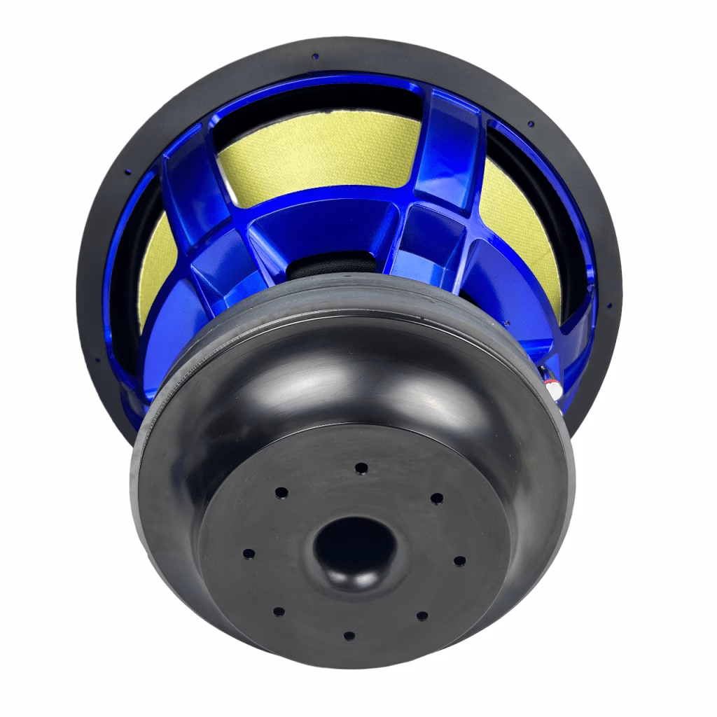 Gs Audio GOLD 10000 – 18″/46cm Subwoofer – 5000WRMS / 10000 W MAXCheck out the detailed data sheet further down the pageThe GOLD series was introduced in 2024 as evolution of the SILVER 6500 and GOLD SPL series. Available in 12″/30 cm, 15″/38 cm, 18″/46 cm and 21″/54 cm sizes, each product is handcrafted in our workshop and can be customized upon request.What is new is the magnetic assembly, now consisting of a 255 mm double ferrite ring and “ufo” polar plates. The Subwoofer reaches a power of 5000 WRMS thanks to the new 8-layer coil with CCAW copper-plated aluminum winding and the carbon-kevlar cone. A structure that enabled improved power handling, ventilation and voice coil cooling. Other features:Spiders: 100% red nomex, quadruple layer, hand-sewn. They offer light weight, rigidity, efficiency, noise and vibration reduction due to tinsel stitching;30/32 cmfoam suspension;Carbon Kevlar sandwichcone. Designed for competition and musical performance. Has exceptional resistance to any kind of pressure (tested on extreme vehicles over 185dB);Carbon dust cover. Increases cone rigidity and dissipates heat generated by the coil.************************************************************This subwoofer is available in 0.7, dual 0.7, dual 1 and 2 Ohm coils. Perfect for competitions and daily use, they offer 5000 Wrms (up to 10000 W max). Data sheet includes an ideal box; for high tempo genres, reducing the box width by 2 inches improves responsiveness and 2-3 Hz tuning. Standard and customizable retuning kits available, as well as spare parts. With a power rating of 5000 Wrms (up to 10000 W max), use with amplifiers between 3500 and 8500 Wrms is recommended. ************************************************************DOWNLOADABLE DATA SHEETS: PDF SHEET ITALIANO – ENGLISH PDF SHEET