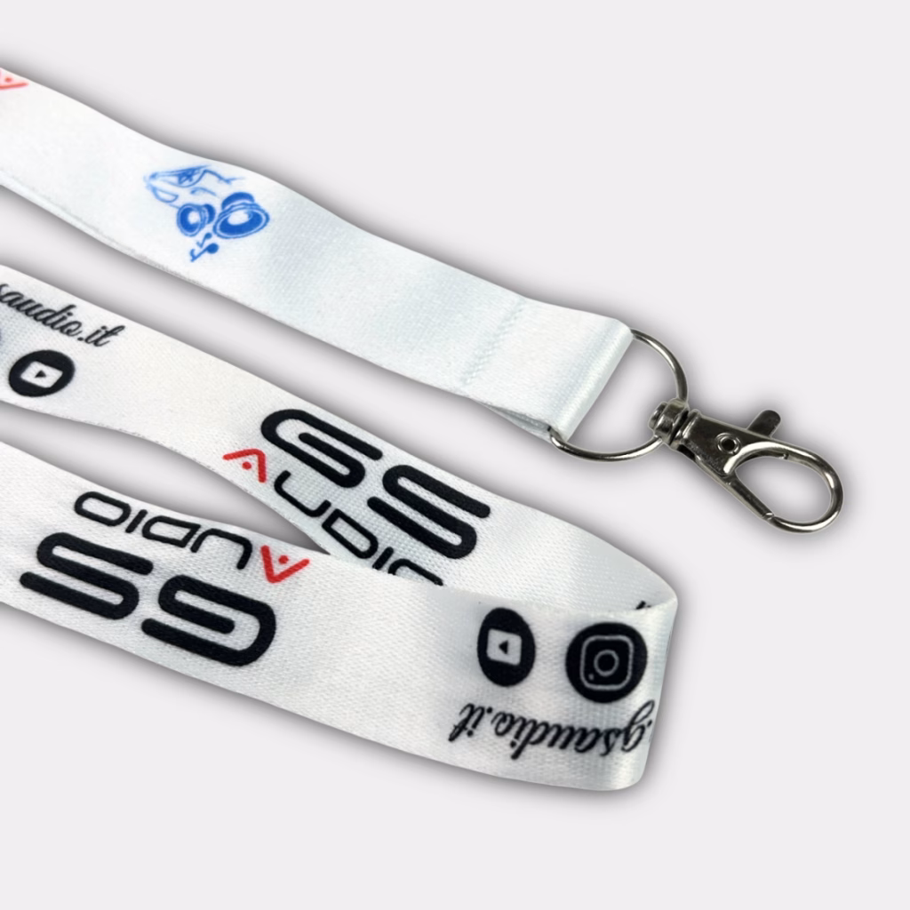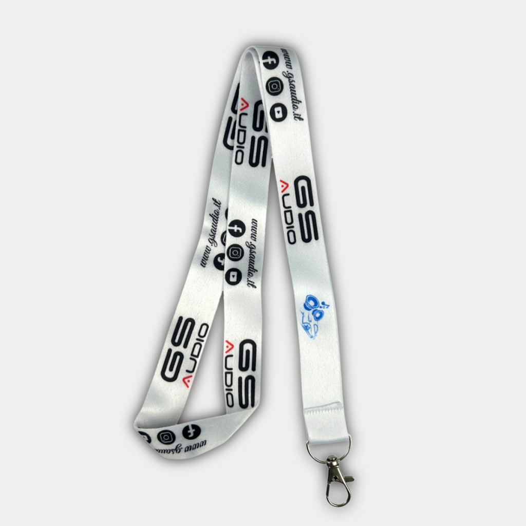 Lanyard | GS Audio Merchandise The GS Audio keychain lanyard is a practical accessory made from durable materials and printed with the GS Audio logo. Ideal for keeping keys, badges or cards handy at all times while providing visibility to your favorite brand. Perfect for wearing at trade shows and events as a badge holder.Key features:Durable and lightweight materialColor: White with GS Audio logo printMetal snap hook Perfect for everyday use or corporate events
