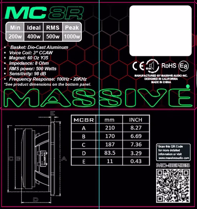 Massive Audio’s Professional Grade- Ultra Efficient, High Power Mid-Range/Bass Speaker designs are a result of years of experience, research and dedication to professional audio reproduction. Our Pro “MC Series” have that Massive “Built Like a Tank” design.