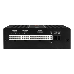 Vahvistimessa on 8 -kanavaa, yksi RCA-lähtö sekä 9-kanavainen DSP-prosessori.