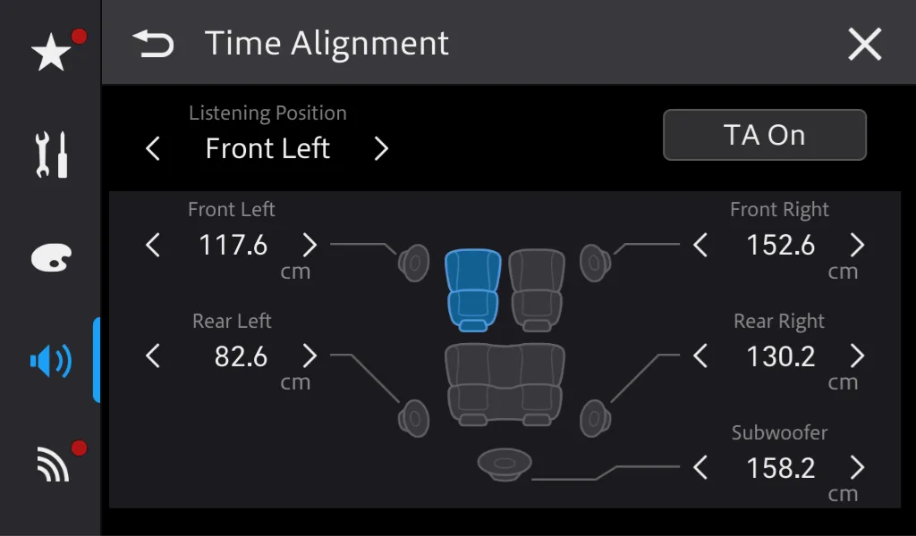 – 3 x RCA-linjalähtö (2v) (etu, taka ja subwoofer)