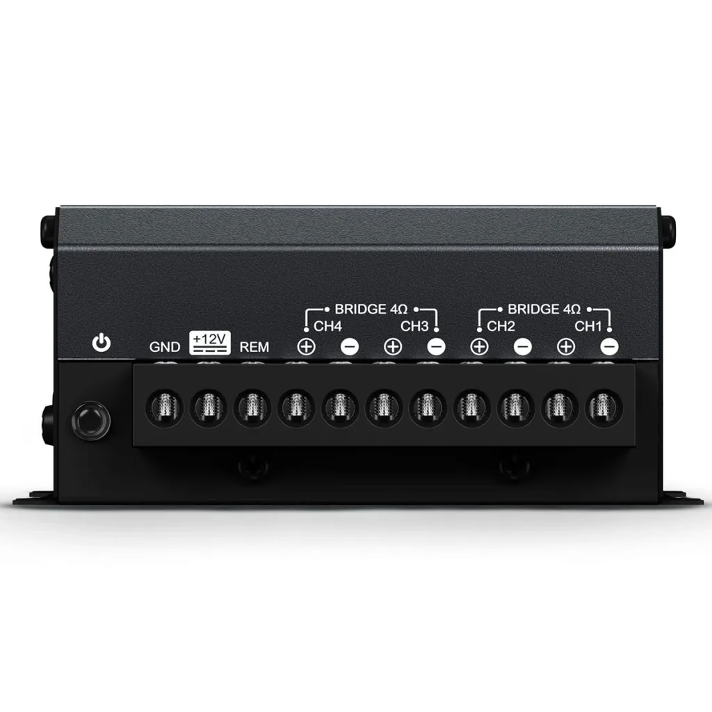 Vahvistimen pienestä koosta huolimatta ulostuloteho on jopa 2×200 W RMS -tehoa!