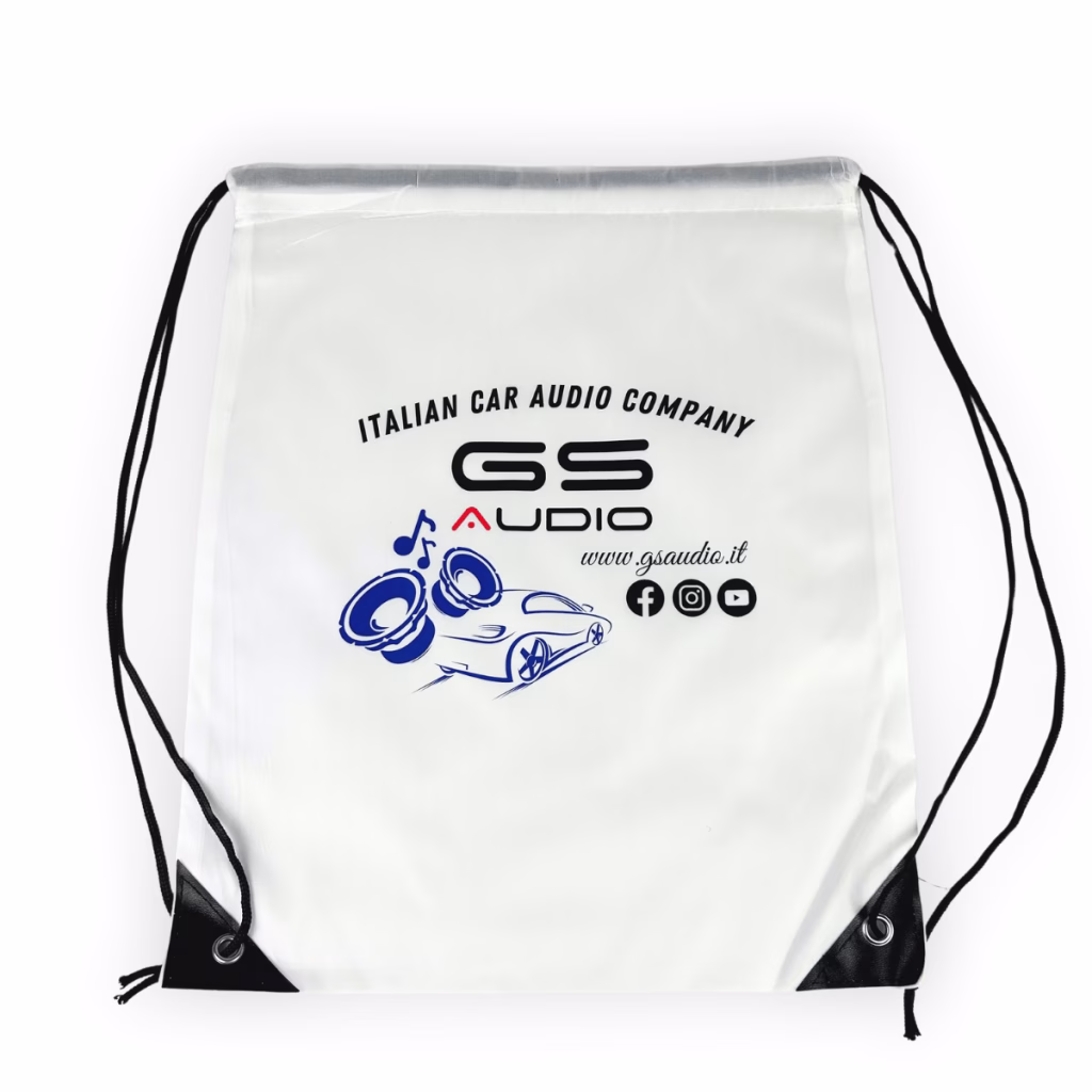 Sports/Multipurpose Bag| GS Audio Merchandise The GS Audio sports bag is ideal for leisure, sports and everyday activities. Made of durable white material with black details, it features the exclusive GS Audio logo print. Equipped with convenient adjustable cords, it is lightweight and practical to carry anywhere.Key features:Lightweight and durable materialColor: White with black detailsGS Audio logo printed on the frontAdjustable strings for optimal comfort