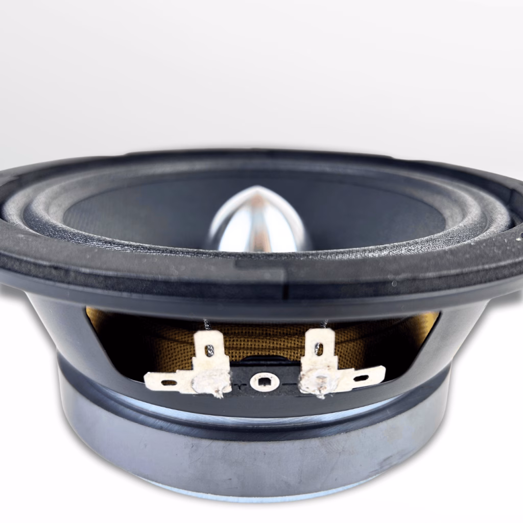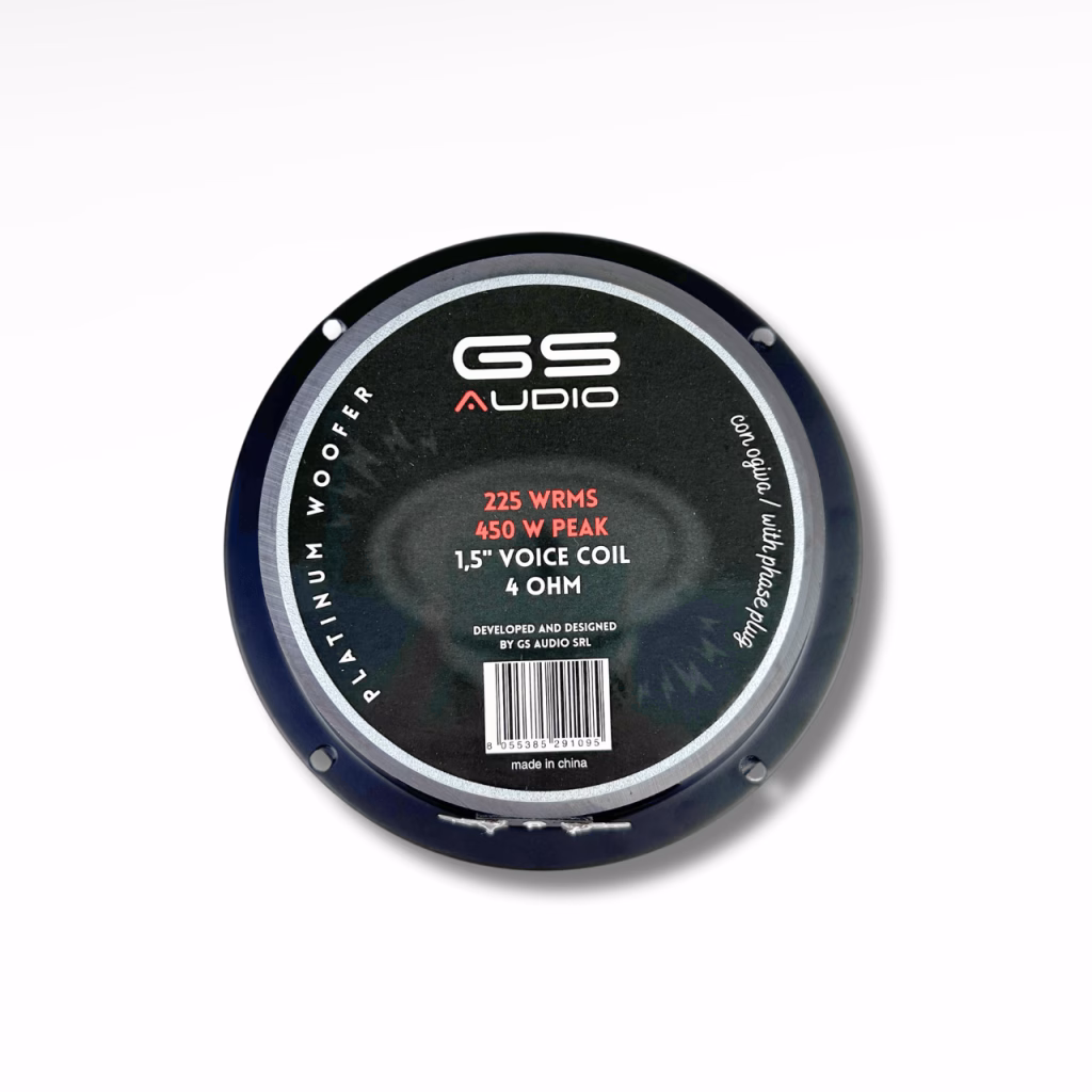 GS Audio Platinum FLAT MK2 Phase Plug 6″ / 160 mm – Coil 38 mm – 225 WRMS – 4 OhmPrice refers to single pieceThe new Platinum FLAT line with phase plug represents the evolution of the previous Platinum FLAT series by now combining improved sonic accuracy, efficiency and stability even at high pressures. Ideal for entry level systems and first car audio setups. What are the new features?Aluminum phase plug: improves dispersion and linearity at high frequencies, providing sharper, more defined sound.Low-depth basket retained to ensure ease of installation even in small spaces.Copper demodulation ring added for more linear frequency response and better thermal dissipation.38 mm coil and high-density ferrite magnet: ensure power, control and stability even at high volumes.Original spare parts available (coil, spider and cone) for easy and long-lasting maintenance.Technical Specifications:Nominal diameter: 6″ / 160 mmSeries: Platinum FLAT MK2 with phase plugCoil: 1.5″/38 mmImpedance: 4 OhmsRated Power (RMS): 225 WPeak: 450 WApplication: Woofer / Midrange Download at this link the Technical Data Sheet of the WOOFER GS AUDIO 6MR200A (PDF)